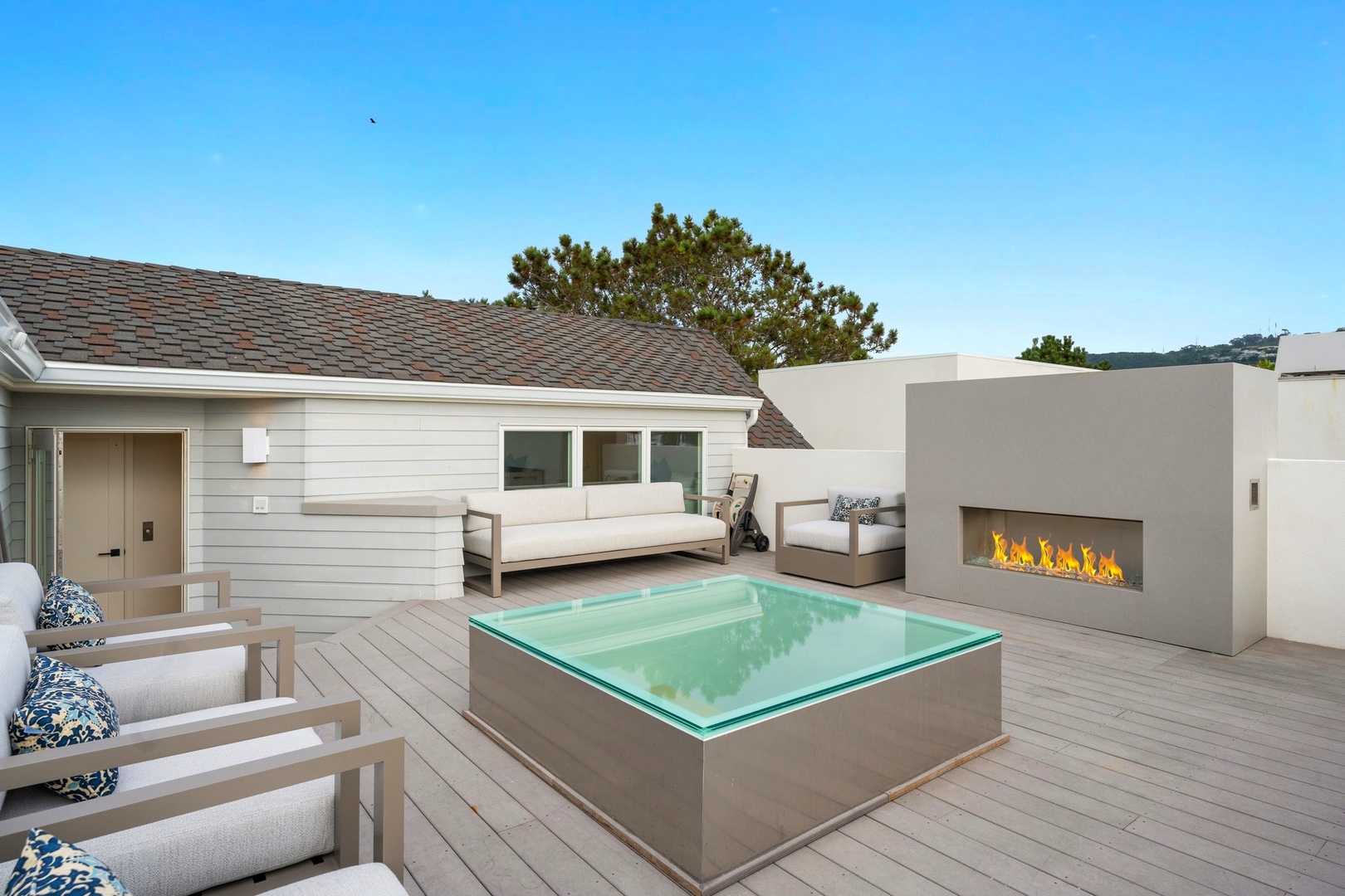 • Oceanview roof deck, lounge seating, bar seating, fireplace